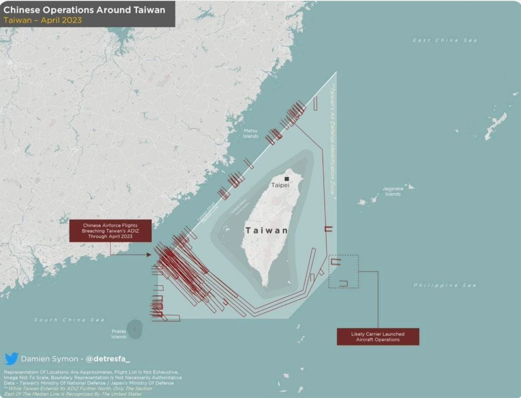 Taiwan regularly monitors Chinese incursions into its ADIZ (air defense identification zone) while the Philippines constantly watches its revenue from its fruit exports.