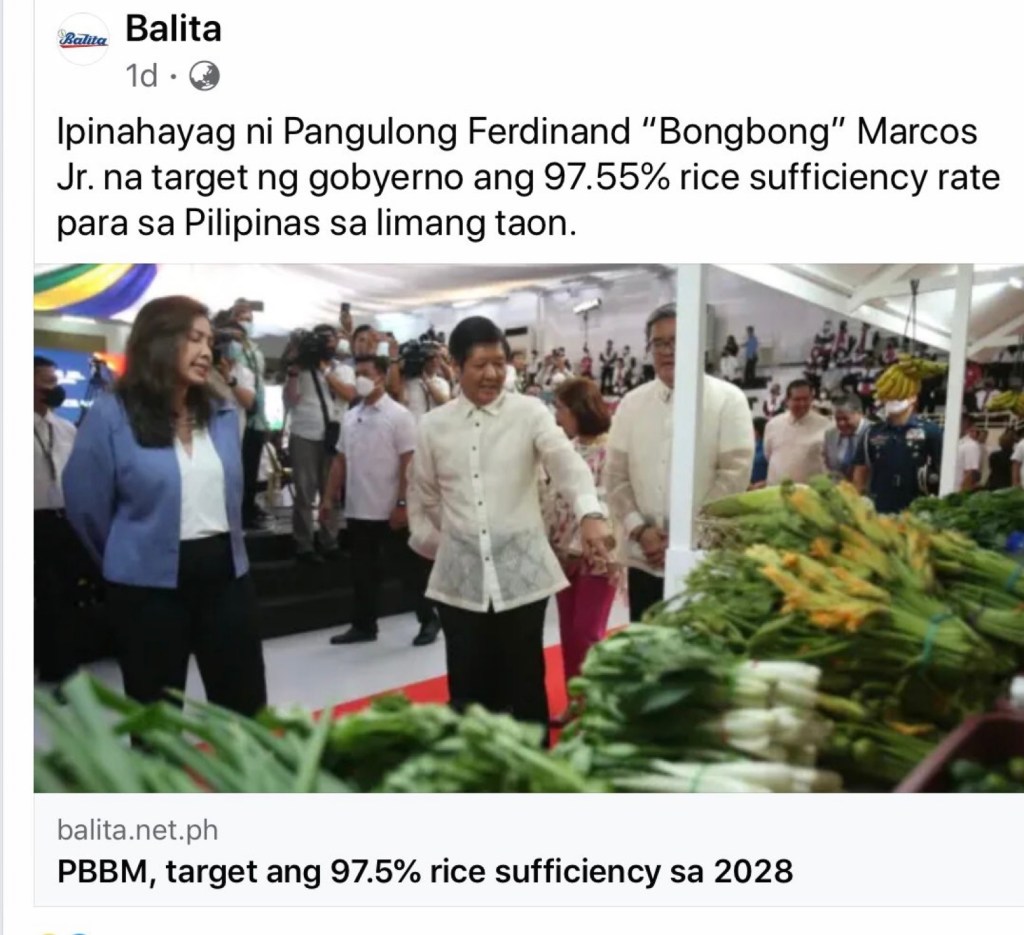 Marcos recently announced the Philippines will achieve 97.55% rice sufficiency in five years. That means 2.45% of Filipinos will still go hungry, at least as far as the national staple of the country is concerned.
