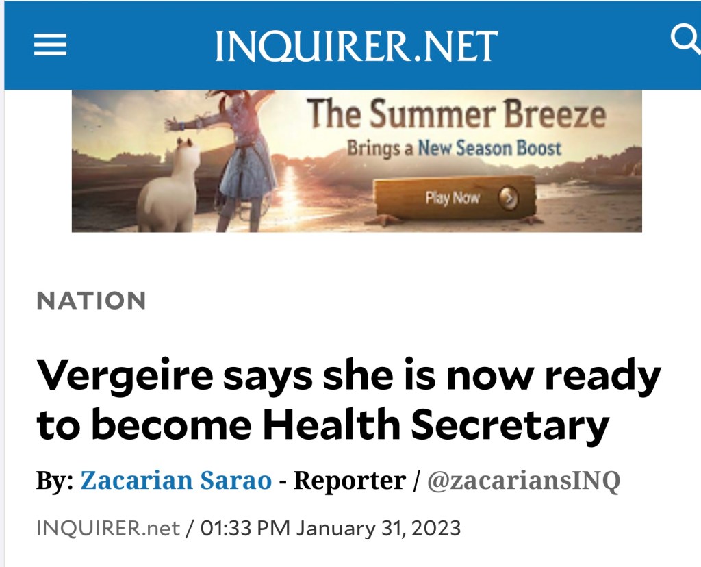 But early this year, Vergeire said she was now ready to become Health Secretary.