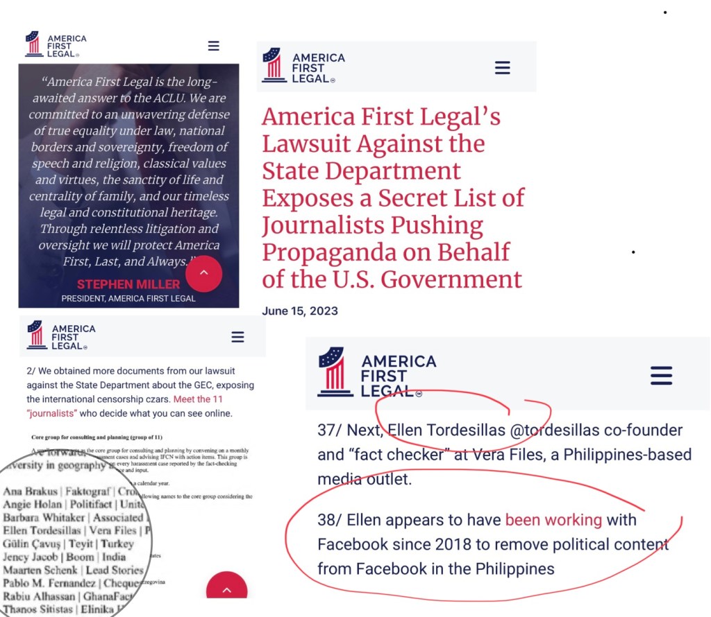 In said exposé, America First Legal said that Tordesillas worked with Facebook to censor political commentary, especially those that are pro-Administration or critical of the Opposition.