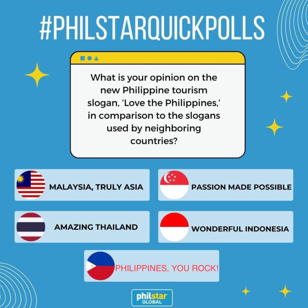 MANILA, Philippines (The Adobo Chronicles, Manila Bureau) – It was a well-meaning poll among its readers — PhilStar comparing tourism slogans used by neighboring countries and the Philippines’ new branding.