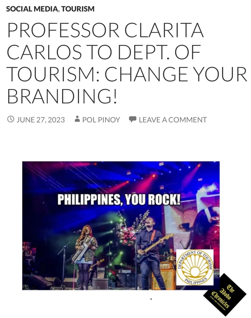 As earlier reported by The Adobo Chronicles, Carlos suggested a more catch and modern slogan: “Philippines, You Rock!”