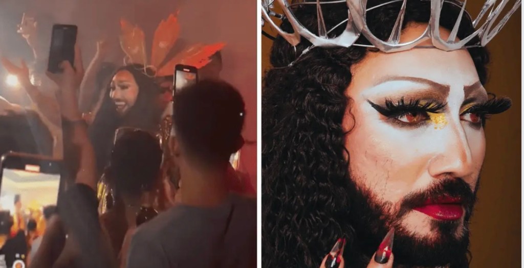 The video, which was posted by Vega herself, shows the drag queen dressed up as the Black Nazarene while singing along to a remix of The Lord’s Prayer in a bar.