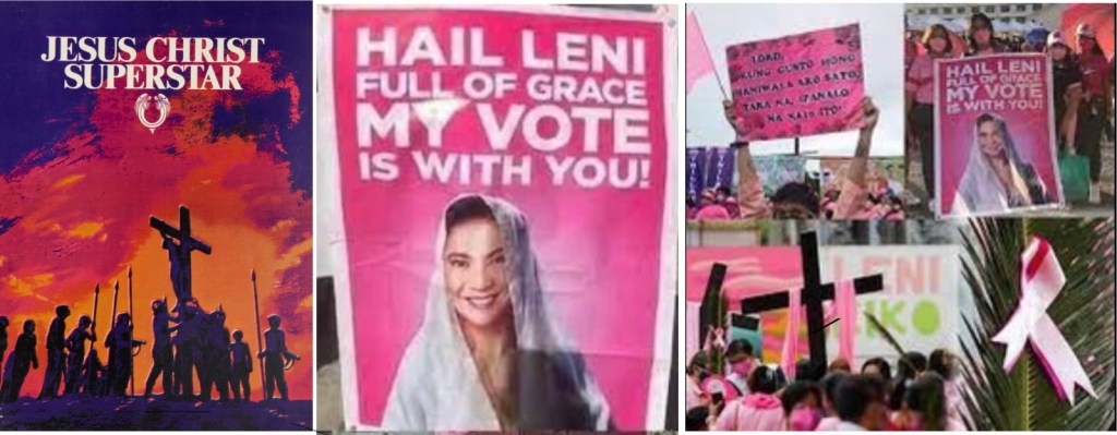 And who could forget the 2022 Philippine presidential campaign when supporters of Leni Robredo paraded a poster depicting her as Mary, the mother of Jesus. And oh yes, that Easter celebration that turned pinklawan!
