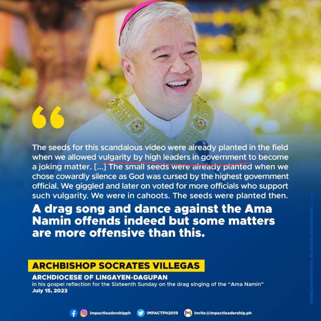 The Archbishop of the Archdiocese of Lingayen-Dagupan was apparently referring to this video of Roxas: