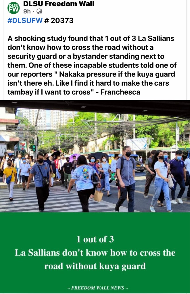 The study on La Sallians found that 1 out of 3 don’t know how to cross the road without a security guard or bystander standing next to them.
