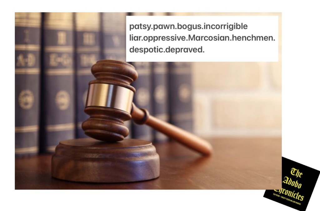 MANILA, Philippines (The Adobo Chronicles, Manila Bureau) – In a decision suspending former Press Secretary Trixie Cruz Angeles for use of “gravely abusive, offensive, and improper language” in a court pleading, the Philippine Supreme Court has, in effect, also suspended words and phrases from the English Dictionary.