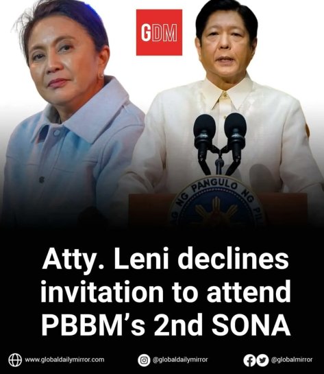 MANILA, Philippines (The Adobo Chronicles, Manila Bureau) – First Lady Liza Marcos says she is very devastated that ex-Vice President Leni Robredo is not attending President Bongbong Marcos’ State of the Nation Address (SONA) on July 24.