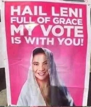 - -Leni Robredo, considered the heir to Mother Theresa as a Living Saint, for her countless efforts to attend to the needs of the poorest of poor Filipinos (laylayan), in pursuit of her political ambitions.