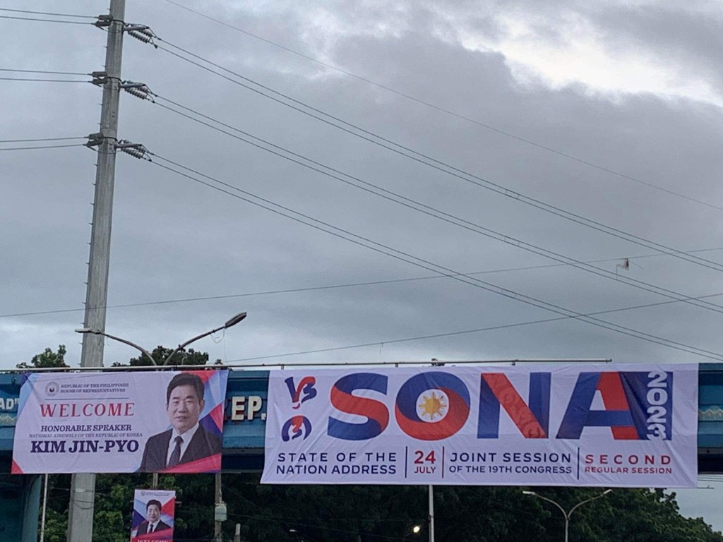 Already, banners welcoming the South Korean dignitary as SONA speaker have been put up in various locations in Metro Manila, including this one at a footbridge near the Batasang Pambansa, venue of the SONA.