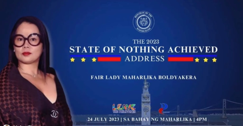 Yesterday, Bb. Maharlika vlogged what she called the “State of Nothing Achieved” (SONA, which means State of the Nation Address).