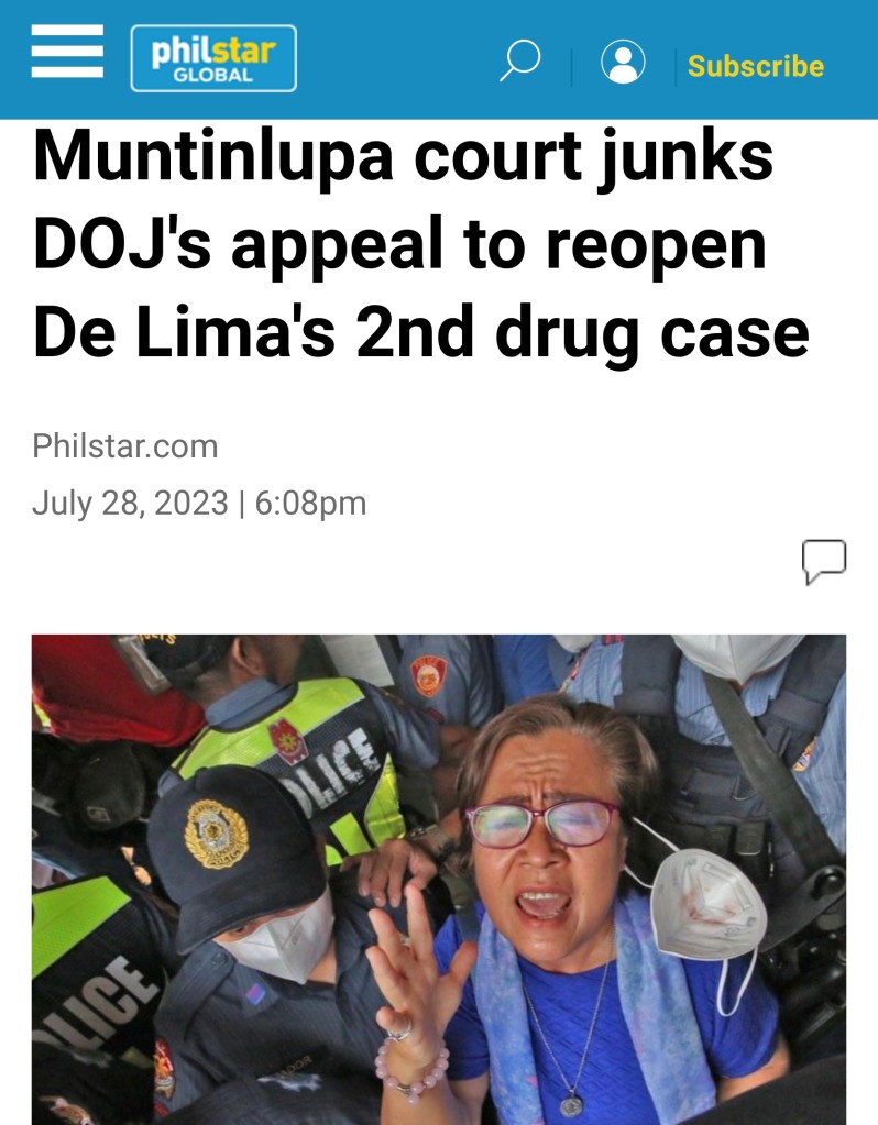 Now, the ICC is praising the decision of a Manila Regional Trial Court affirming the acquittal of former Senator Leila de Lima in one of her three criminal cases.