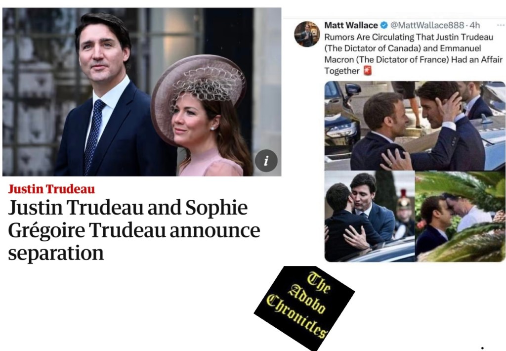 PARIS, France (The Adobo Chronicles, Paris Bureau) – Moments after the official announcement that Canadian Prime Minister Justin Trudeau and his wife have separated, the Internet was abuzz with rumors that the real reason for the split was his alleged romantic relationship with French President Emmanuel Macron.