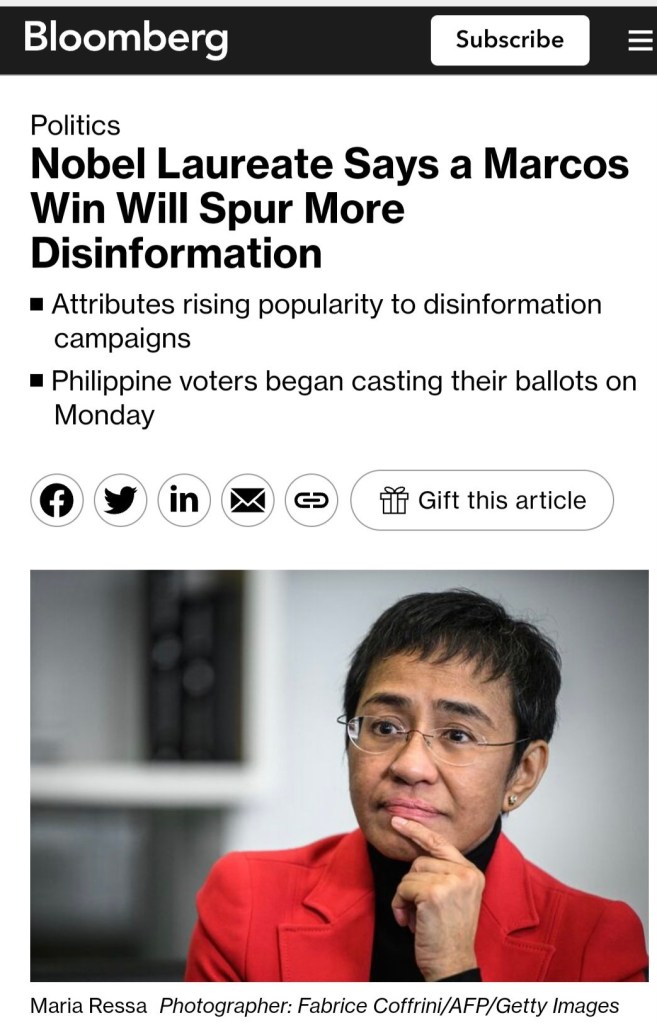 Ressa herself predicted that a Marcos victory will spur more disinformation and attributed his popularity to disinformation campaigns.