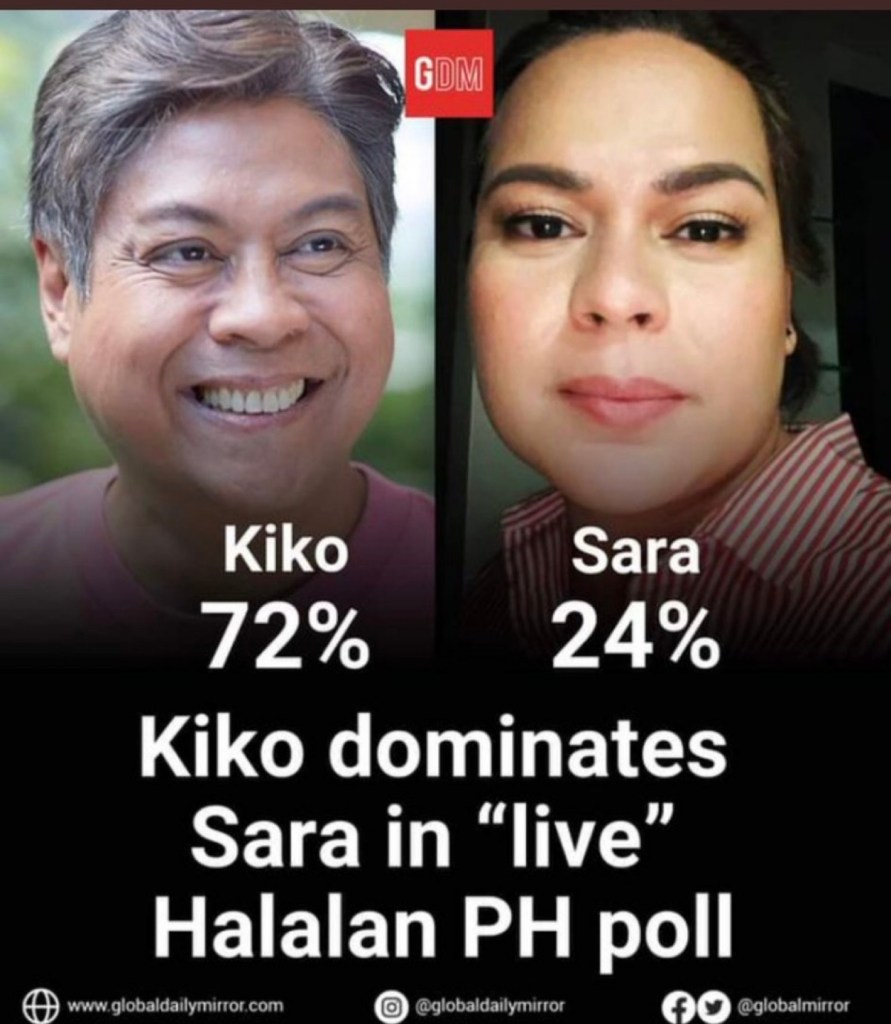 MANILA, Philippines (The Adobo Chronicles, Manila Bureau) – A poll on potential candidates for the 2028 Philippine presidential elections shows that former Senator and defeated 2022 Vice Presidential candidate Kiko Pangilinan leads Vice President Sara Duterte by a margin of 3 to 1!