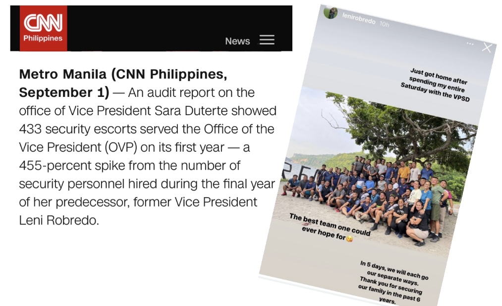 MANILA, Philippines (The Adobo Chronicles, Manila Bureau) – The noise about Vice President Sara Duterte’s security detail versus that of former VP Leni Robredo is much ado about nothing.