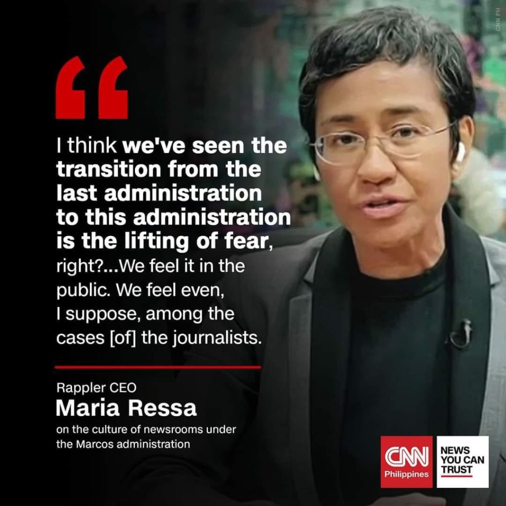 While she had stubbornly accused the (Rodrigo) Duterte government of weaponizing the law to curtail press freedom, she now says there is a “lifting of fear” under Marcos, even among journalists.