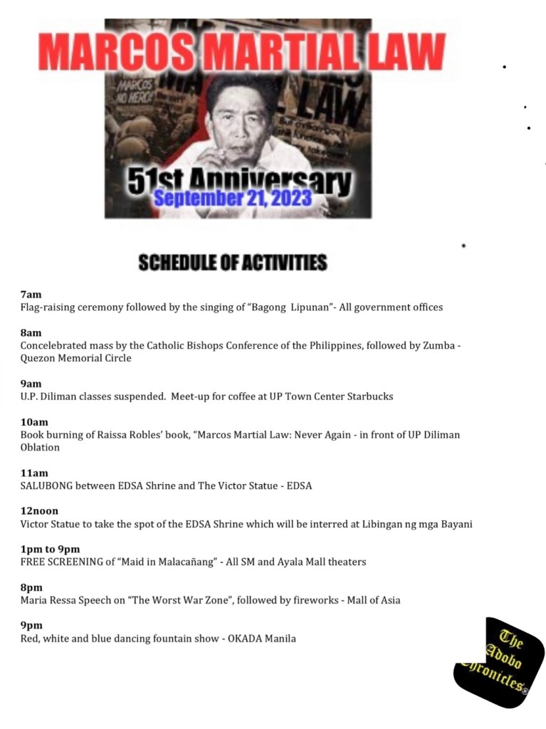 It’s Here! Final Schedule Of 51st Anniversary Of Marcos Martial Law!