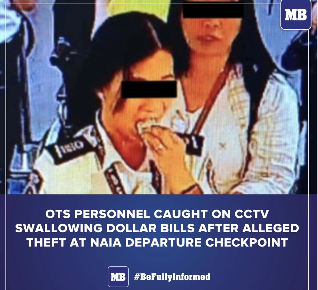 An airport female security guard was recently caught on CCTV swallowing three hundred dollars which she allegedly stole from a departing passenger.