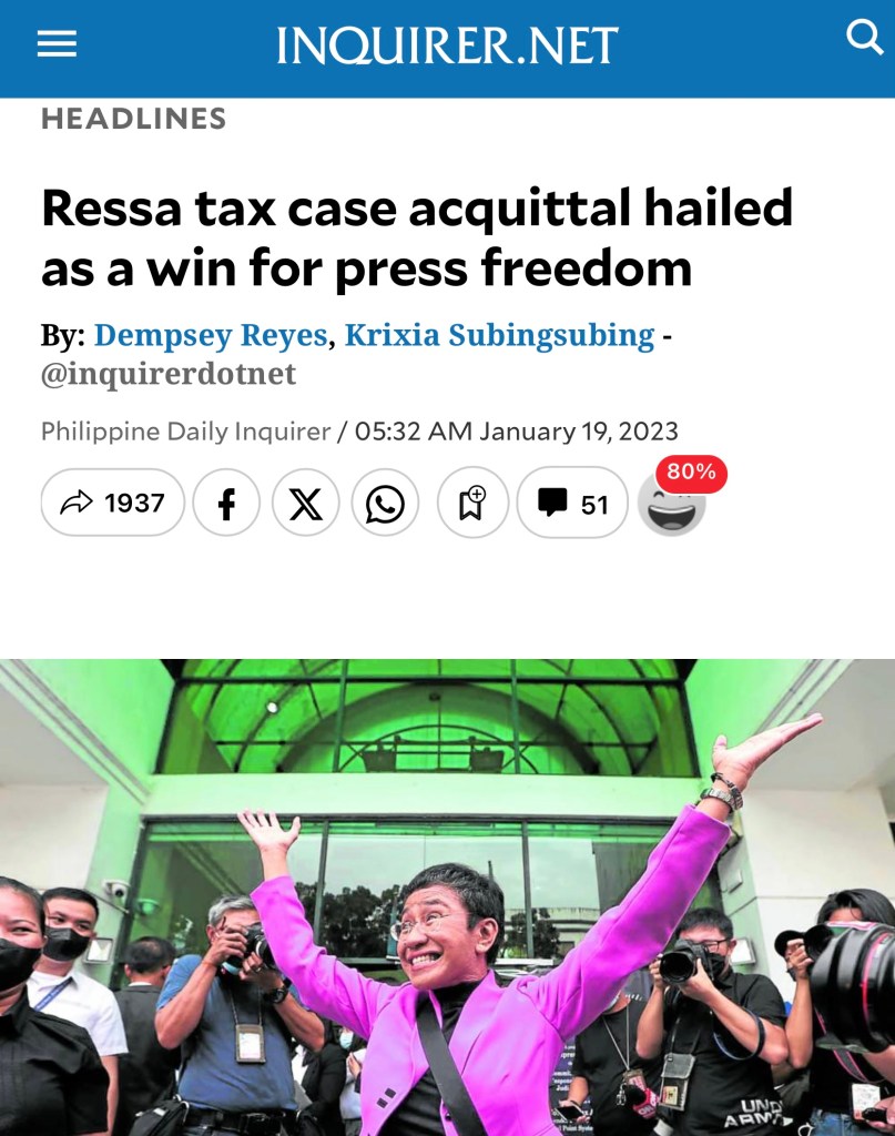 But why let facts ruin a good narrative? These contortionists insist that every court decision somehow shapes the future of journalism. What’s next, blaming potholes for fake news? Let’s be clear: Ressa’s case is about tax compliance, not journalism’s survival. So, to those masterful spin doctors, keep your leaps of logic to the gymnastics floor. The rest of us prefer to live in the real world.