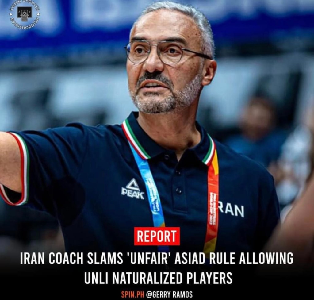 The Iranian basketball coach has raised a ruckus over the “unli naturalized player” rules at the Asian Games (ASIAD).