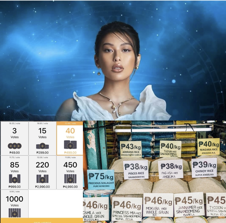 Let’s break it down. In this bizarre beauty pageant ecosystem, three votes can get you a kilo of rice with some change left over. Three votes! And that’s not all. If you’re feeling generous and decide to go all-in, 1000 votes can get you five 50-kilo bags of rice. That’s a lot of rice, folks.