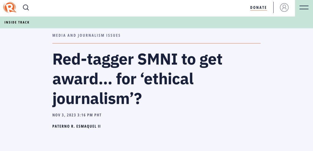 Rappler, well-known for its unique approach of editorializing the news, recently published an article about the award with the headline “Red-tagger SMNI News To Get Award for ‘Ethical Journalism,'” showcasing their unparalleled talent for irony. It’s almost like a masterclass in self-awareness, though one can’t help but wonder if they truly grasp the concept.