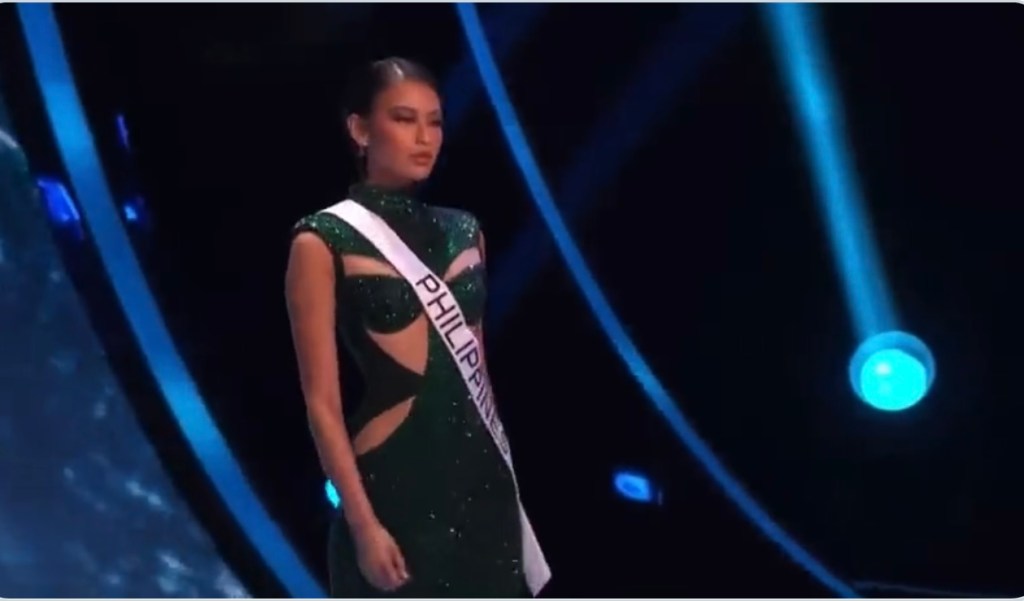 In a stunning display of fashion foibles, the dark blue stage backdrop at the Miss Universe Preliminaries managed to overshadow Michelle Dee’s otherwise radiant evening gown.