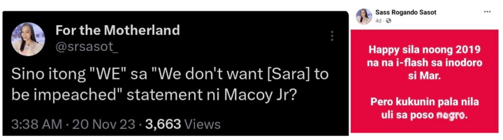 In a dazzling display of grammatical gymnastics, Sasot questions President Bongbong Marcos’ use of the pronoun “we” in a recent statement about VP Sara Duterte’s impeachment talks.