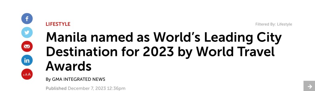Or, could it be that Manila is merely a front, a gateway to more deserving Philippine destinations? Boracay, El Nido, Siargao, Vigan—all paragons of beauty, free from the urban quagmire that is Manila. If the award were put to a vote, it’s safe to say Manila would be the last choice on every Pinoy’s ballot. Sometimes, even Pinoy Pride needs a reality check.