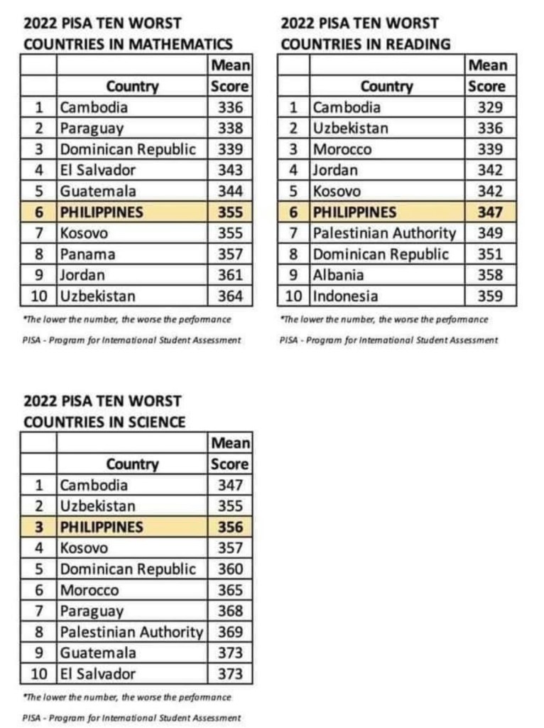 Philippines, PISA Worst Countries in Science (3rd placer)