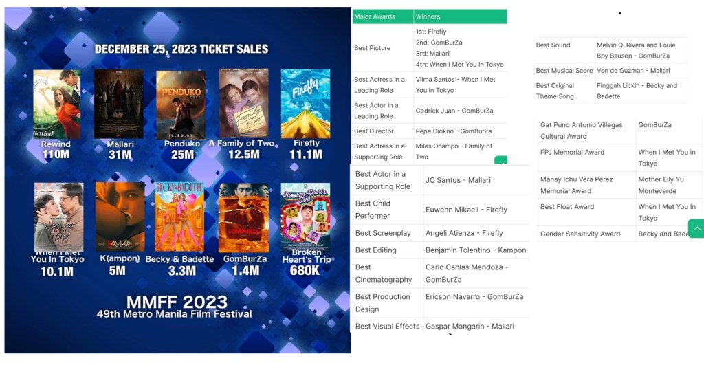 4 awards for Best Picture. That’s 40% of the 10 official entries. Pampalubag loob.