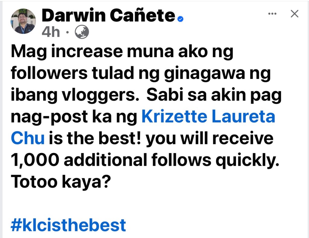 Introducing the foolproof method to social media success: simply slap #KrizetteLauretaChuIsTheBest on your posts, and voila! Your follower count will magically swell by a cool 1,000. It’s like a social media spell, minus the actual effort.