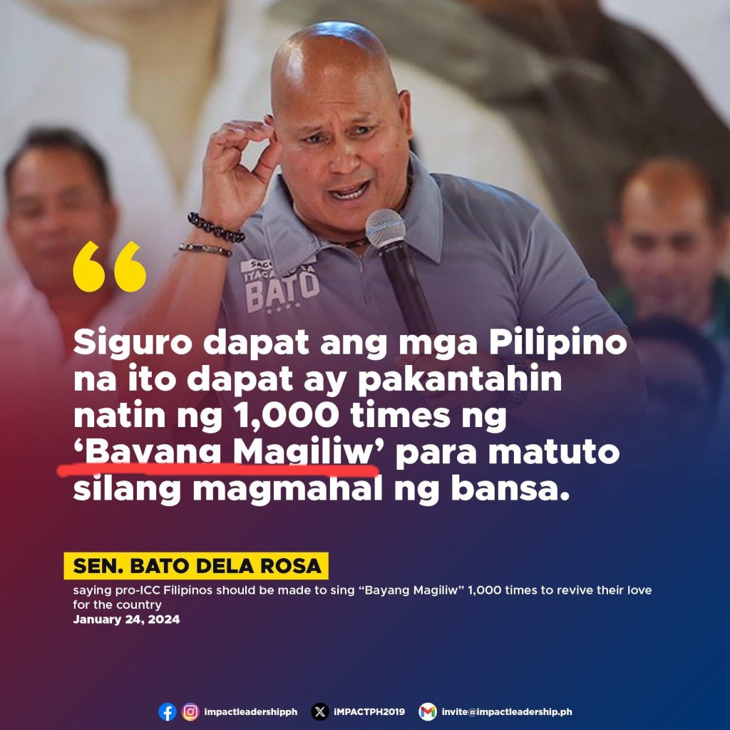 Senator Ronald Bato’s recent call for Filipinos to sing “Bayang Magiliw” a thousand times as a patriotic exercise has left the nation in a harmonious haze of confusion.
