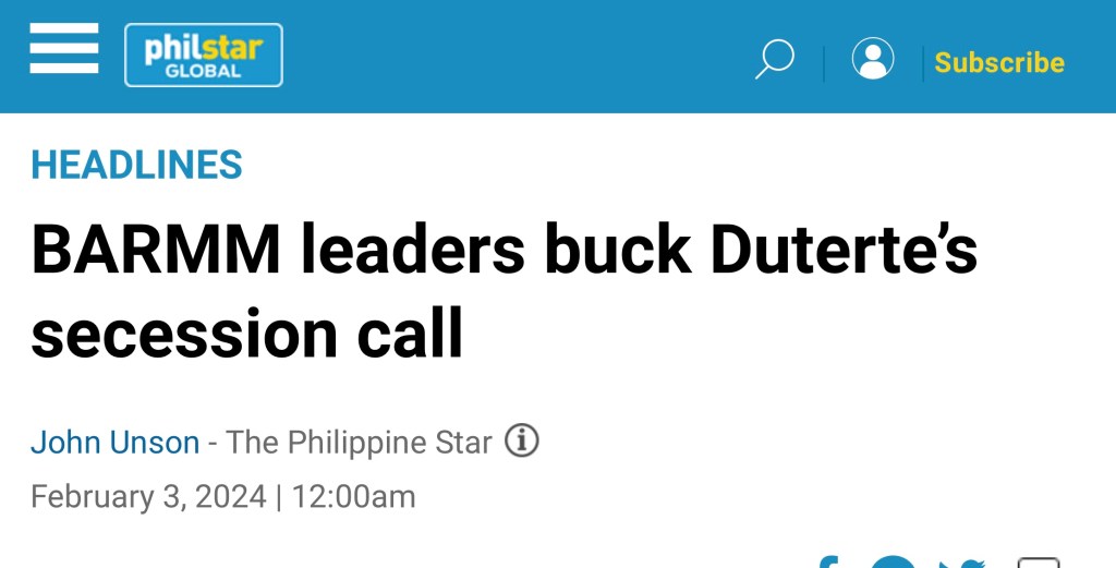 The Bangsamoro Autonomous Region in Muslim Mindanao (BARMM) has gracefully declined Rodrigo Duterte’s generous offer of Mindanao’s secession from the Philippines.