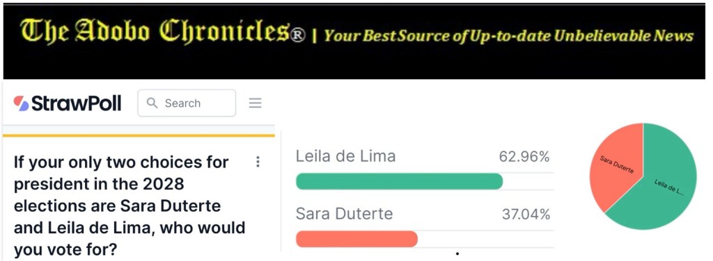 The Adobo Chronicles conducted a random, unofficial straw poll on which lady politician Filipinos would vote for if the choice for president in the 2028 elections boils down to Leila de Lima or Sara Duterte.