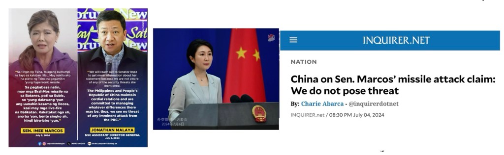 No less than the Armed Forces of the Philippines and national security officials have denied her allegations and the Chinese Embassy in Manila has responded with assurances that China is not a threat to the Philippines.