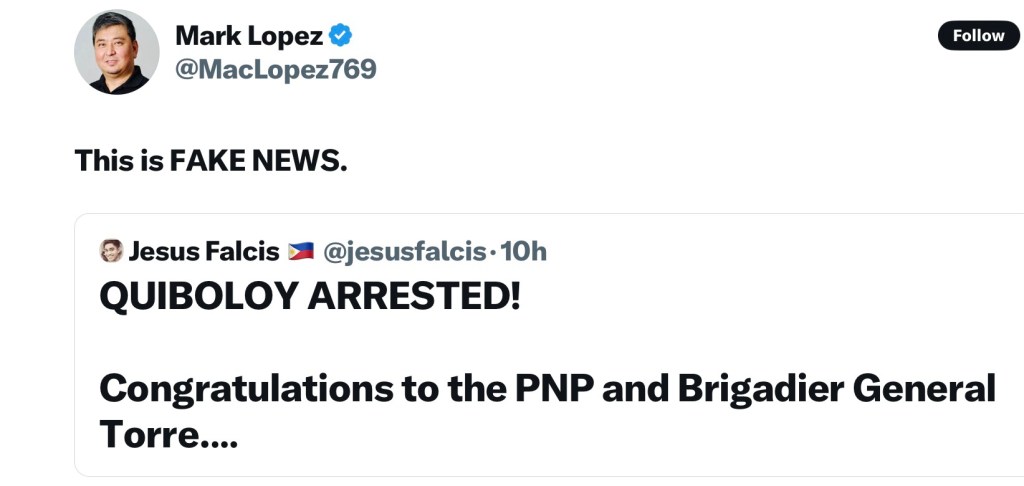 Upon hearing about the arrest of the ever-controversial Apollo Quiboloy, Lopez, known for crying “fake news” at the most inopportune times, quickly claimed it was all just a misunderstanding between “arrest” and “capture.”