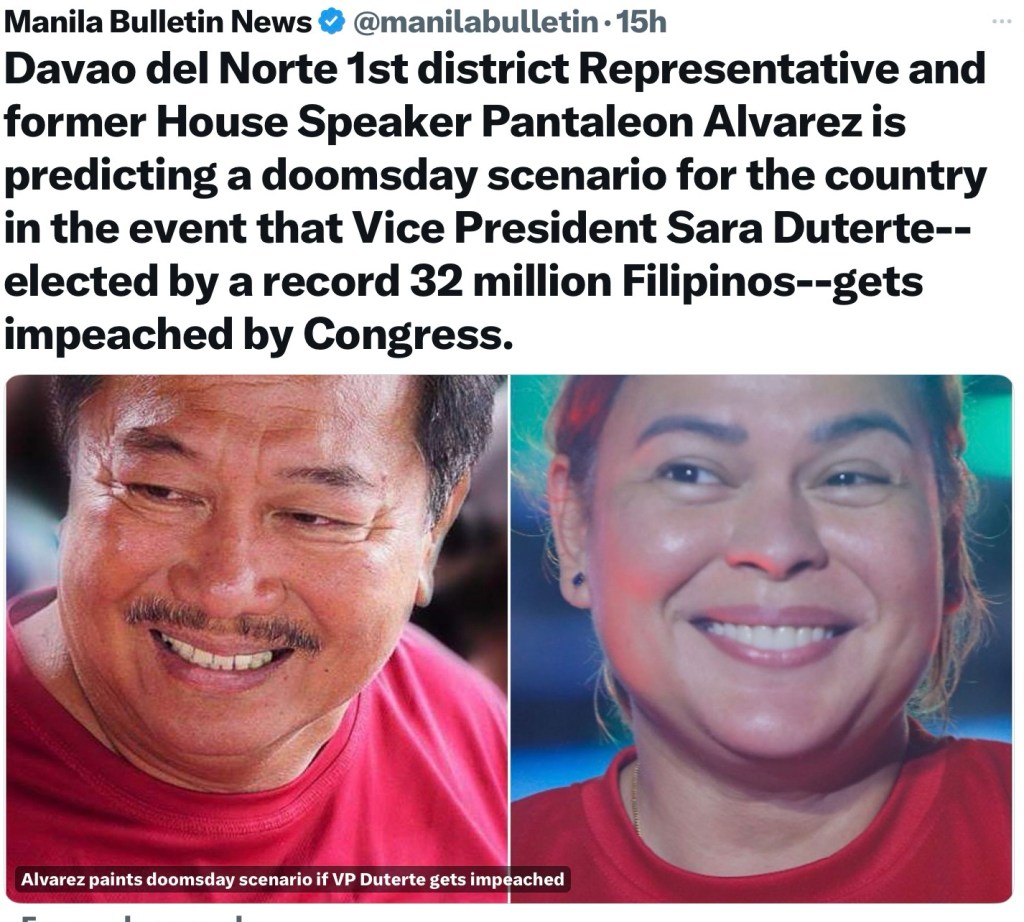 Pantaleon Alvarez, once a beacon of legislative order, now seems to have found his next calling: the nation’s doomsday prophet. His new prophecy? The Philippines will crumble if VP Sara Duterte gets impeached. Move over, Apollo Quiboloy!