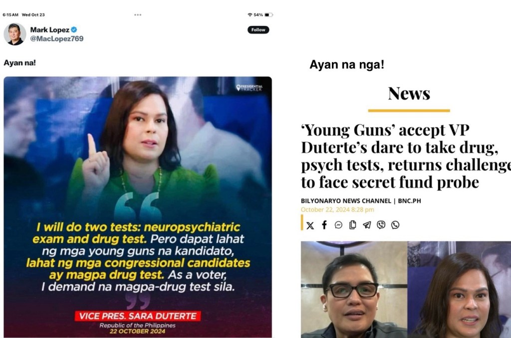 In a thrilling turn of events, Vice President Sara Duterte, in an act of unparalleled boldness, accepted a challenge to undergo psychiatric and drug tests. Naturally, this was a power move aimed to silence her critics. Little did she know, her detractors were more than ready to play ball. The young guns in Congress, not ones to back down, gladly accepted her dare and raised the stakes, asking her to appear in Congress and answer a few minor questions about her time as VP, DepEd Secretary, and Davao City Mayor. It’s the kind of political showdown that makes for riveting reality TV — will she pass with flying colors or fumble under the spotlight? The popcorn is hot, and the audience is eager. In the end, the lesson is simple: be careful what you ask for, especially when your critics have better tricks up their sleeves than you anticipated.