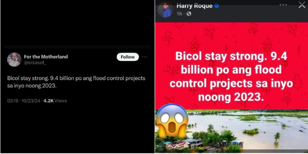 In a stunning display of synchronized thinking, Atty. Harry Roque and Sass Rogando Sasot both posted identical comments about the Bicol floods and the region’s 9.4 billion-peso flood control projects—without acknowledging each other!