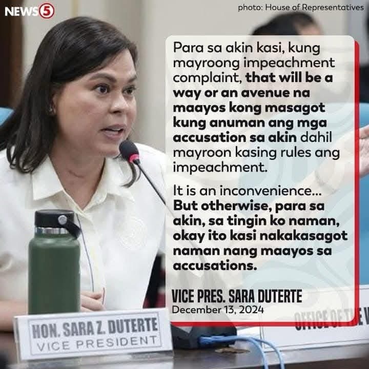 Imagine this: the nation’s second-highest official, who has masterfully dodged lawmakers’ questions during Senate and House hearings about her mysterious confidential funds, is now eagerly awaiting an impeachment trial to “answer questions.” The very senators she avoided answering before would then transform into her judges in the impeachment court. It’s like skipping class all semester, only to volunteer for the final exam, administered by the same teachers you ghosted. Bravo!