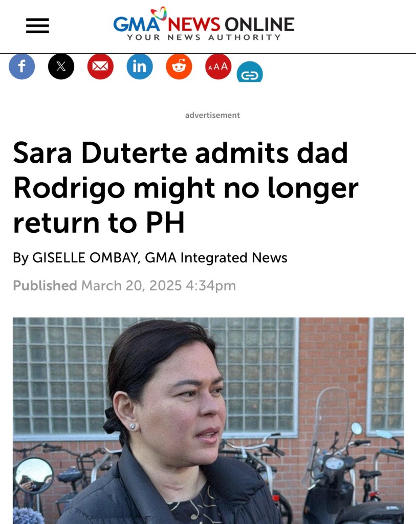 Sara Duterte, ever the pragmatic daughter, gently tells the nation to move on from her father’s international legal woes—because, really, what’s one more fugitive ex-president in exile?