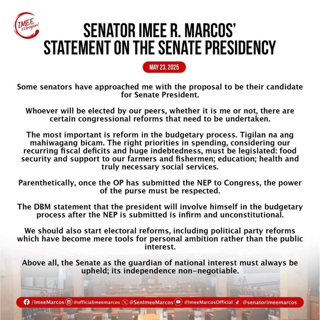 Imee Marcos as Senate President? What a thrilling plot twist—straight out of a teleserye, but with more dynastic flair!