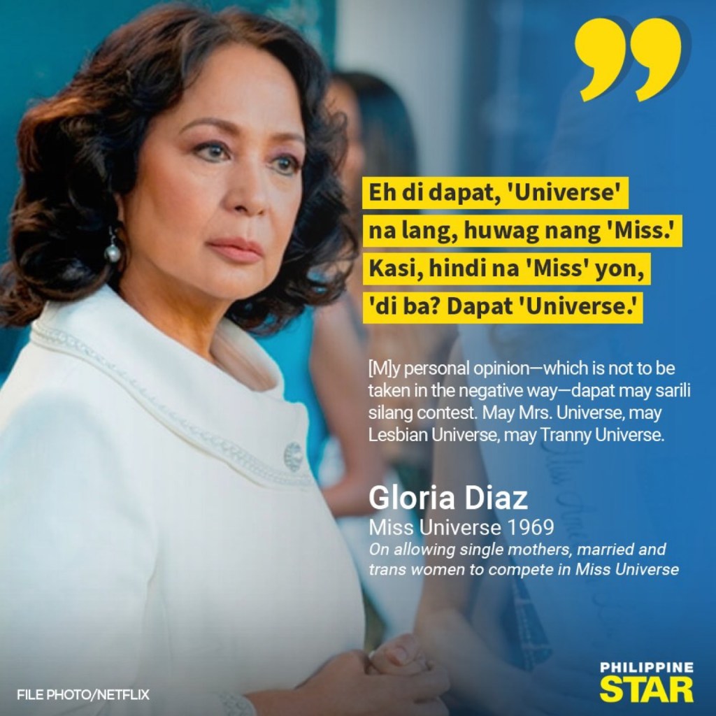 Gloria Diaz has criticized the Miss Universe Organization for allowing single mothers, married and transgender women to compete in the international beauty pageant.