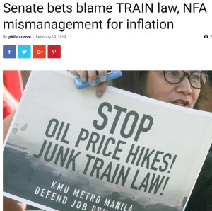 Well, reacting to February 2019’s inflation rate report, Robredo who, just last year, was guest speaker at a forum at the London School of Economics, expressed deep concern at the continued decline of the Philippines’ inflation rate — from 5.1% in December of 2018 to 4.4% in January and 3.8% in February this year.