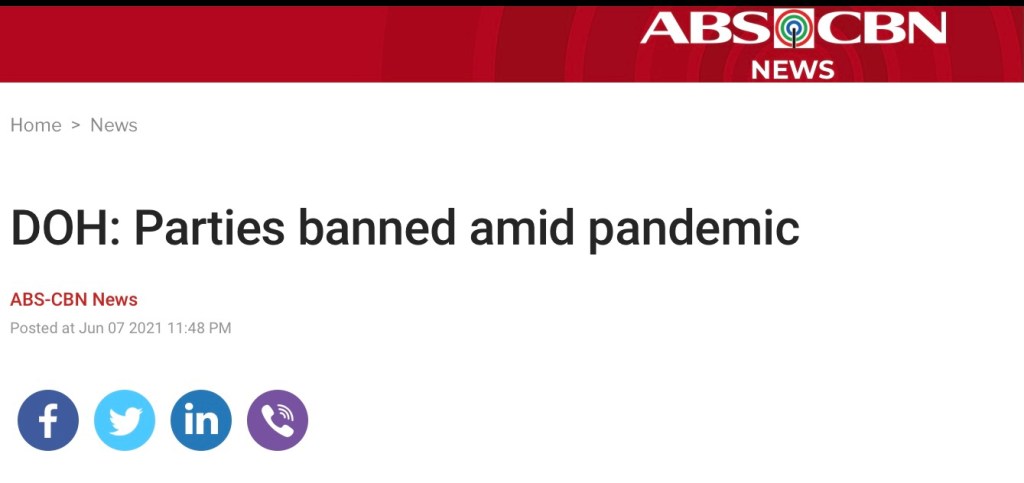 MANILA, Philippines (The Adobo Chronicles, Manila Bureau) – Just as the pre-campaigning for the 2022 Presidential elections goes into high gear, the Philippines’ Department of Health has announced that parties are banned during the pandemic.