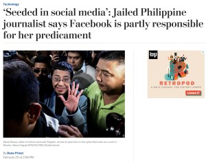 In the past, Ressa had accused Facebook of sowing political division among the public and allowing the proliferation of online “trolls’ and “fake news.”