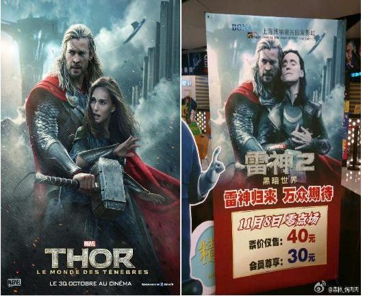 An international version, in Chinese with English subtitles, has a slightly different plot. Jane Foster is the enemy and Thor’s journey reunites him with Loki (Tom Hiddleston), his long-lost romantic interest. The international version opened to rave reviews in Shanghai, China. Since it opened last weekend, theaters have seen long lines of fans braving the cold weather and willing to fork out 40 Yuan to be among the first to see the film.